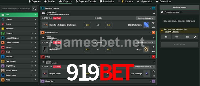 O 919Bet oferece uma grande seleção de opções de apostas em e-sports com probabilidades competitivas